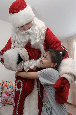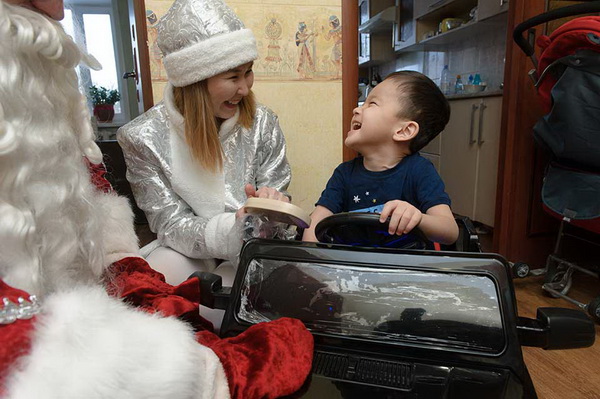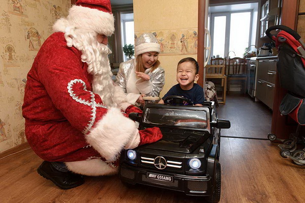 Он счастливо хохотал, восторженно прикрывал лицо руками, обнимал и целовал машину! «Би-би!» – вторил гудку игрушечного мерседеса. Так Султанмурат Ташенов встретил свой подарок. А Дарина Ембергенова кинулась обнимать Деда Мороза.