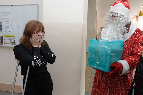 У подарка для Валерии Смирновой (ложный сустав, операция, аппарат Илизарова) интересная история. О девочке прочитал бывший костанаец, который живет в Нью-Йорке. Лера мечтала о машинке для аппаратного маникюра. Молодой человек из США заказал через Интернет машинку, оплатил доставку. И Дед Мороз со Снегурочкой вручили Лере посылочку! Девочка, несмотря на то что передвигается на костылях, учится в колледже на логиста, ходит на курсы по ногтевому дизайну.